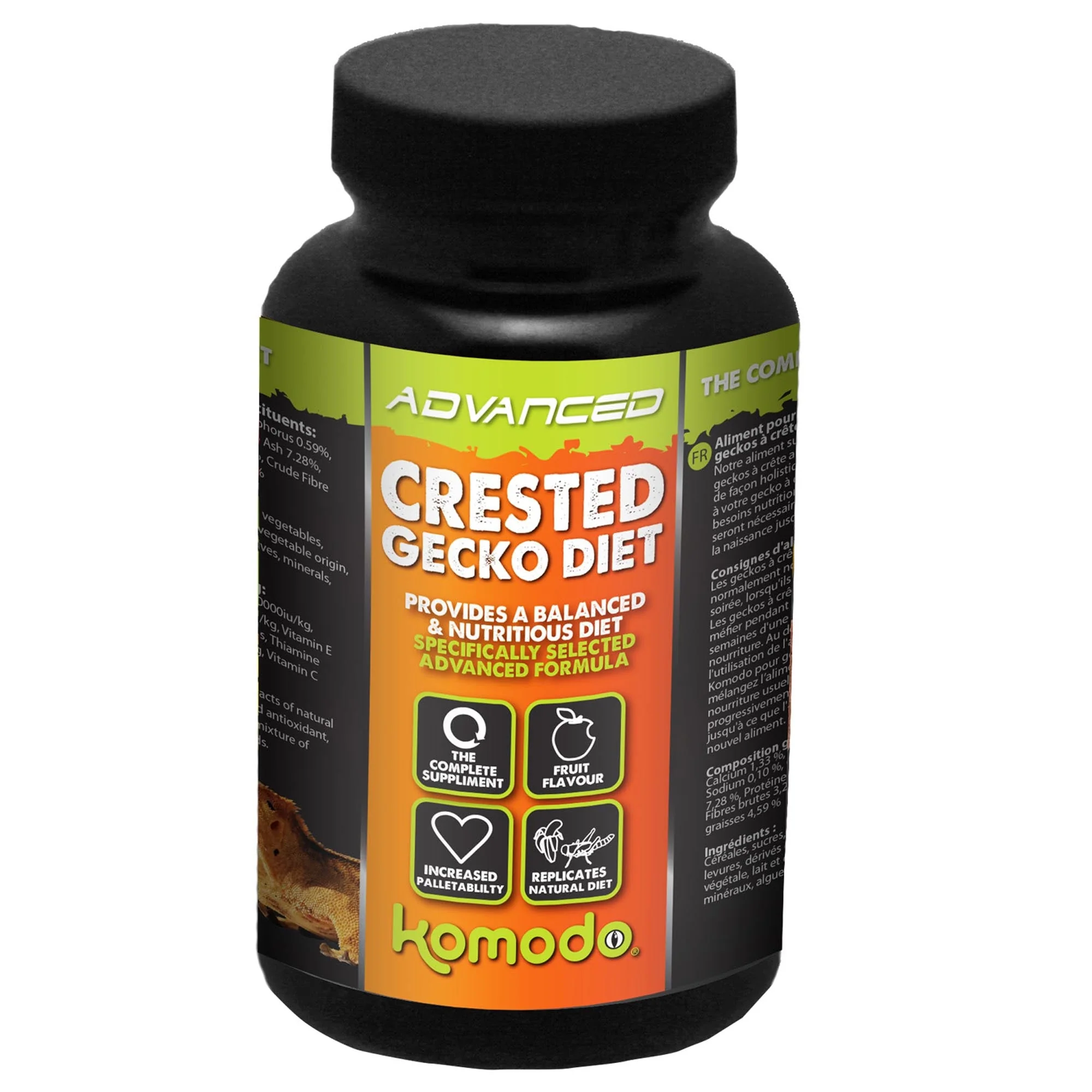 The Komodo Advanced Crested Gecko Diet is a complete and balanced food formulated to meet all the essential nutritional needs for your gecko. It contains a carefully balanced mix of calcium, Vitamin D3, and a wide range of vitamins and minerals, ensuring optimal health.