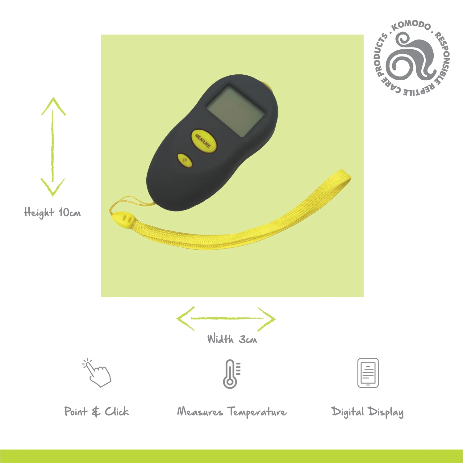 This Infrared Thermometer is a handy, high-tech tool that's incredibly easy to use. Simply point and click to instantly get an accurate temperature reading from any park of the enclosure. It provides quick, convenient monitoring of habitat temperatures, making it idea for checking all areas of your terrarium.
